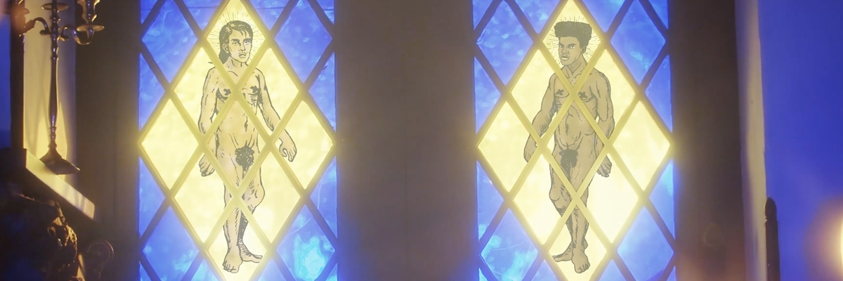 For Dorian Electra’s “Adam and Steve”, the symbolism is stained glass and angels, paired with even more homoerotic intensity.