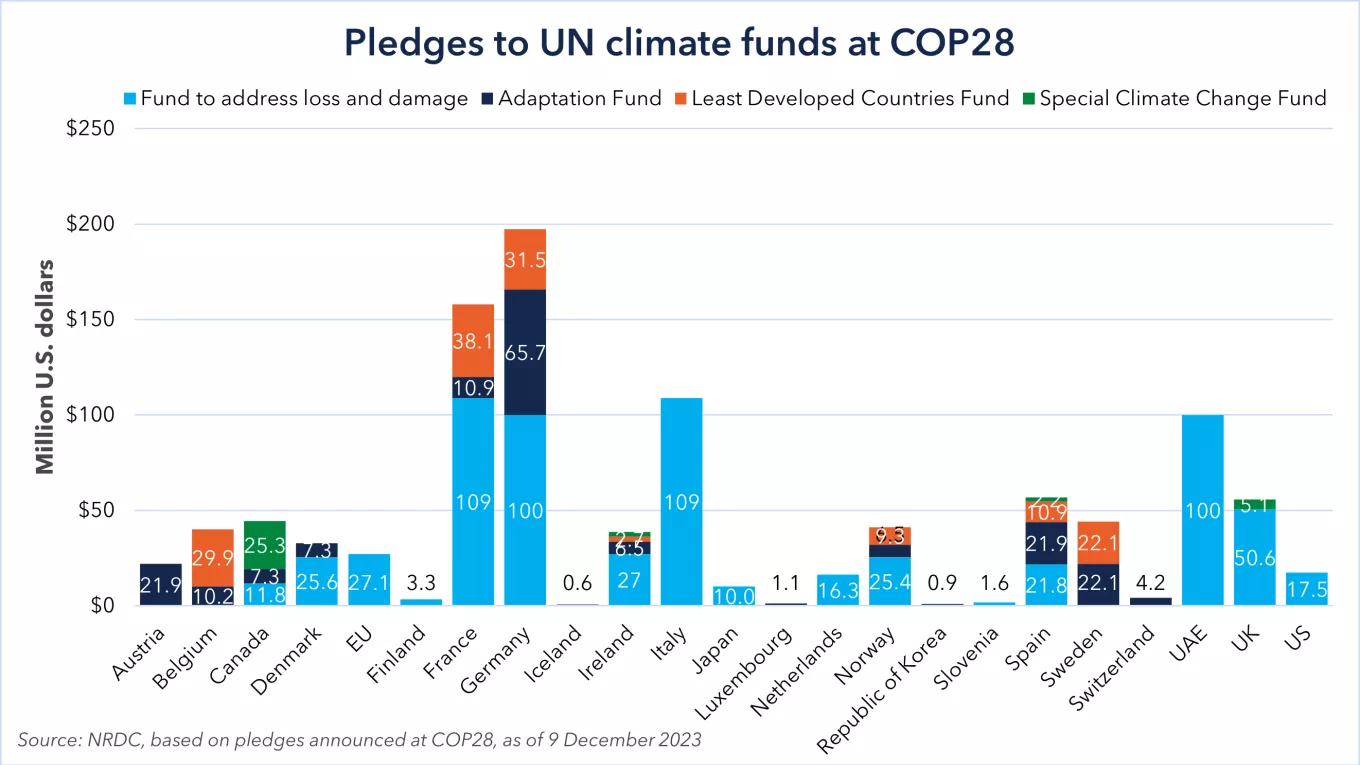 Although the conference began with a small win for an overdue loss-and-damage fund (the mere existence of which nearly derailed COP27), pledges for countries hardest hit by climate change soon stalled. Although at least $400 billion USD is already necessary on an annual basis, COP28 ended with only $656 million pledged by an array of countries, with the US offering a mere $17.5 million.
