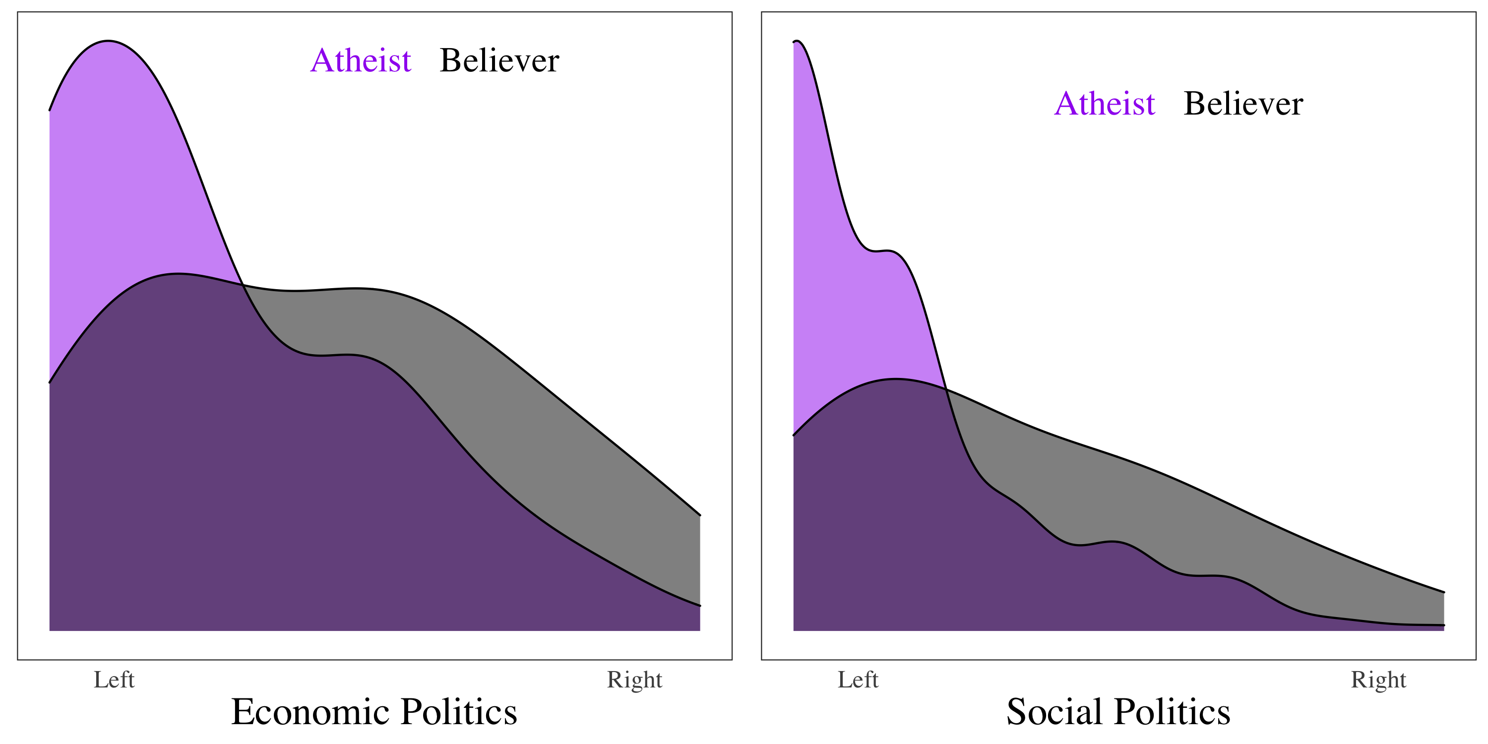When it comes to overall political attitudes, most atheists skew leftward of most theists on economic and social issues.