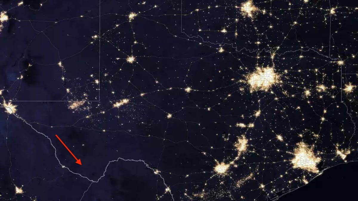 A satellite image of Texas at night shows the lights of cities and towns throughout most of the state. But in the Big Bend region along the Rio Grande, in the borderlands of Big Bend National Park and across the river in northern Mexico, light gives way to a jet-black void.