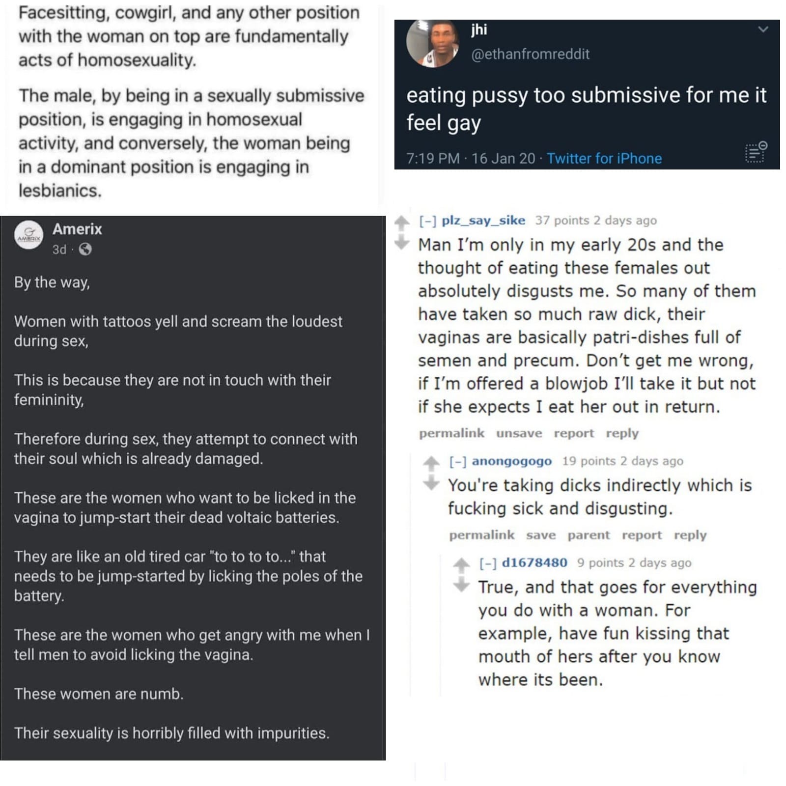 Similarly, the manosphere has internalized the belief that women's sexual liberation will spell doom for society, because part of how they define society itself includes “men controlling women.” If that's not happening, then it's not “society” per se, it's more like Primordial Chaos. You need more Principled Order, or your whole culture will fail in the struggle for domination and hegemony.