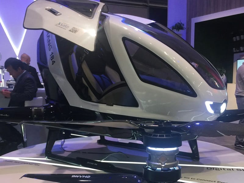 In 2018, EHang, an autonomous aerial vehicle (AAV) technology company based in Guangzhou, China, exhibited its EHang 184 prototype at MWC (Mobile World Congress) in Barcelona (see photo below). The EHang prototype demonstrated its vision for a future where flying taxis will be used for urban air mobility, reducing commuting time and shortening distances. The company also anticipated the use of flying vehicles to deliver medical supplies, organs for transplant, and emergency services in remote areas where access by road is impossible or difficult.